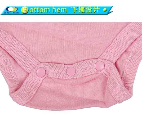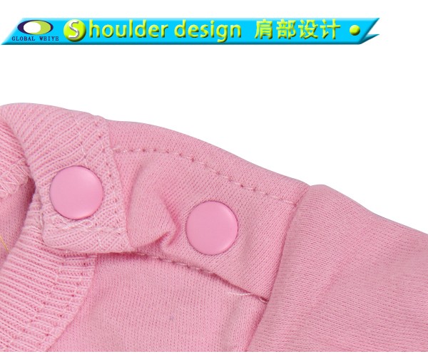 Newborn baby girl clothes with lace sleeves, 2 sides neck buttons design for easy baby wear and take off, shiny pink printing in front, 3 buttons under the babysuit, Classic designs with a little lace sleeves, that's lovely design for baby, you can custom your design for newborn baby .