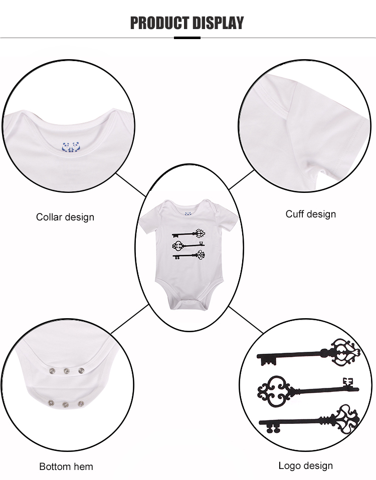 Comfortable and soft newborn clothes for your new baby, simple waterbase silk screen pritning logo in front and back neck, Classic design with sizes from 0 month to 24 months,short sleevs let  baby feel better in summer, custom your brand design, choose the hot sale fabric to make your bussiness better.