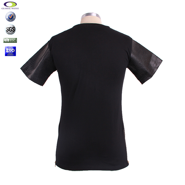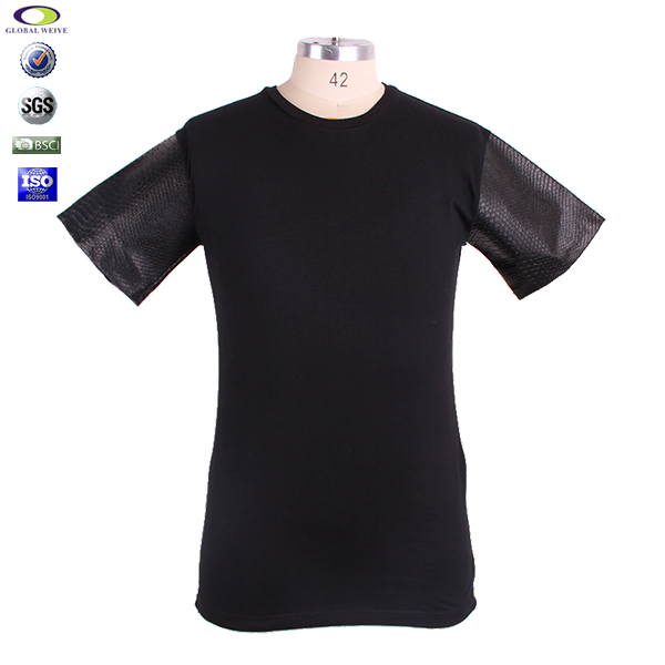 潮流皮革袖男士黑色圆领短袖T恤空白 |