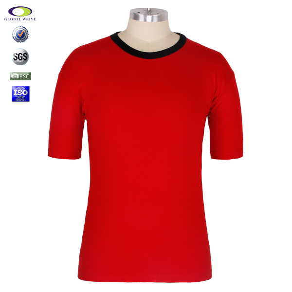 男士撞色领空白T恤红色圆领纯棉,高档环锭纺棉 柔软贴身  吸湿透气  天然环保,经典圆领短袖 ,撞色设计,专业纸样 标准裁剪