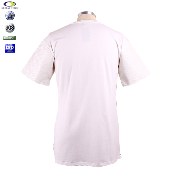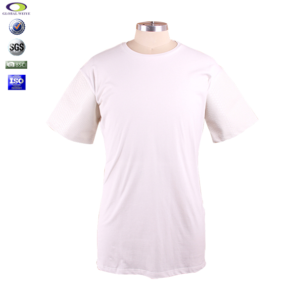 个性皮革袖男士白色圆领短袖T恤空白 |
