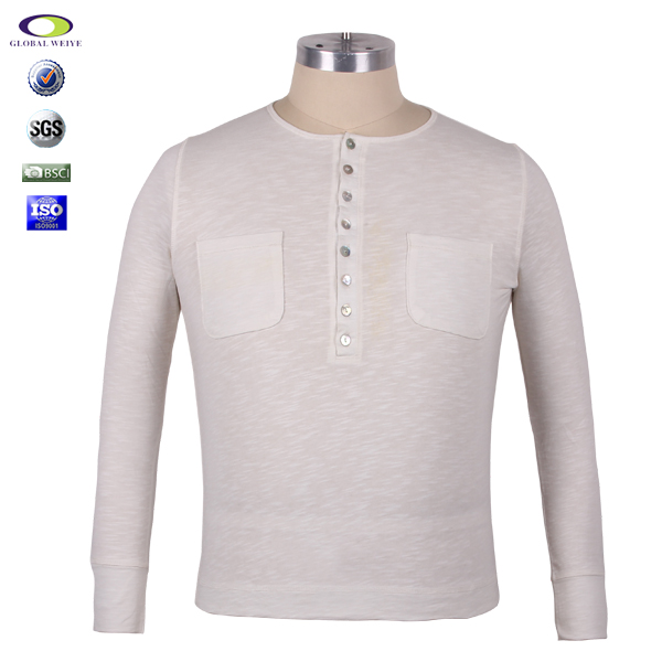 时尚女士全棉纽扣口袋设计长袖圆领T恤,高档环锭纺棉、 柔软贴身、  吸湿透气  、天然环保、  柔软舒适,开襟圆领 纽扣设计 保暖长袖 牢固丝网印logo