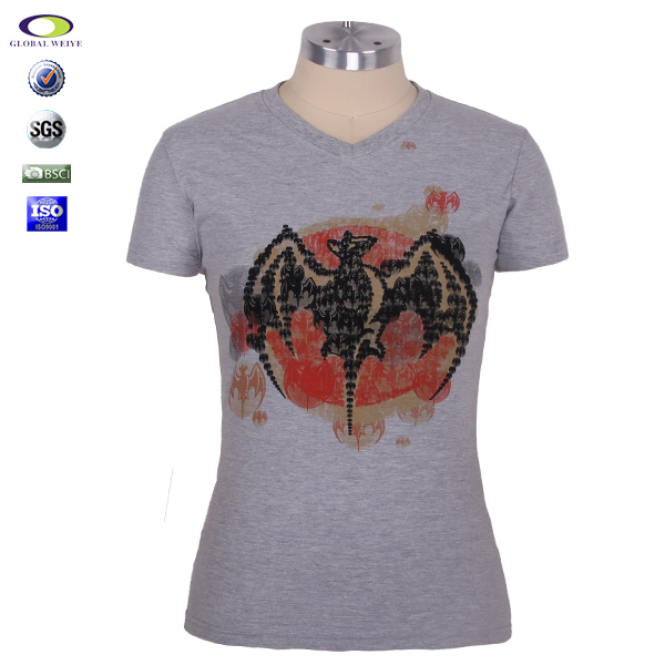 广告衫女士蝙蝠印花V领T恤衫,前幅蝙蝠高品质环保丝网印,吸湿透气  不起球、吸湿保暖、天然亲肤、环保染色经典短袖时尚V领T恤
