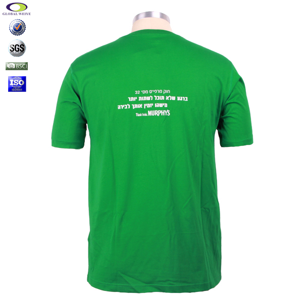 广告宣传绿色男士V领印花T恤,前后幅高品质环保丝网印logo,高性价比精梳棉   吸湿透气  不起球、吸湿保暖、天然亲肤、环保染色 经典短袖时尚V领款式 。