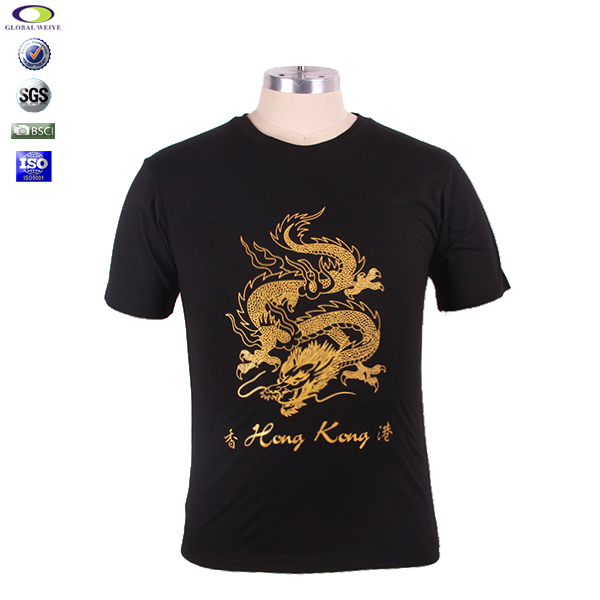 广告宣传纪念男士黑色圆领印金恤衫定制 |