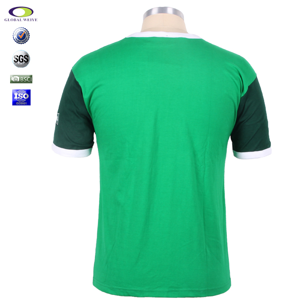 广告宣传异色袖白色领男士圆领印花T恤衫,前幅高质量丝网印logo,专业纸样 标准裁剪,高性价普通棉纱 吸湿透气 不起球、吸湿保暖、天然亲肤、环保染色 经典短袖时尚圆领款式 。