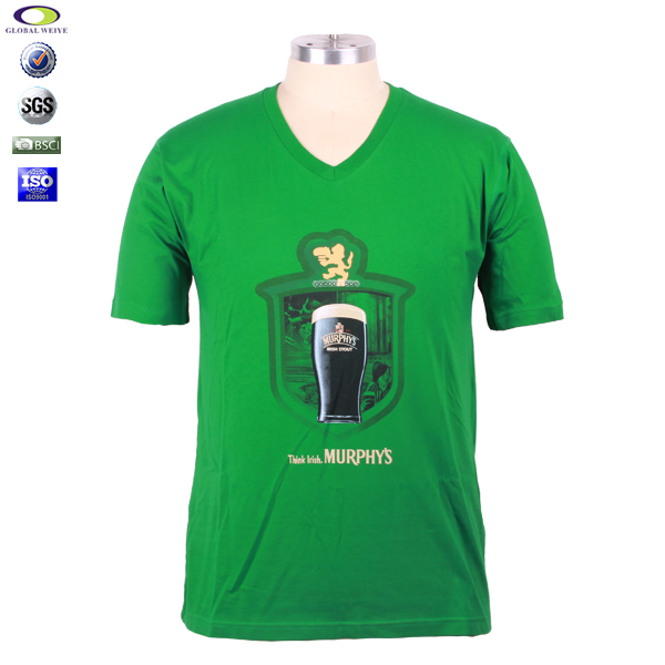 定制广告衫男士V领印花绿色t恤衫定做,前幅高质量丝网印logo,专业纸样 标准裁剪,高性价比精梳棉   吸湿透气  不起球、吸湿保暖、天然亲肤、环保染色 经典短袖时尚V领款式 。