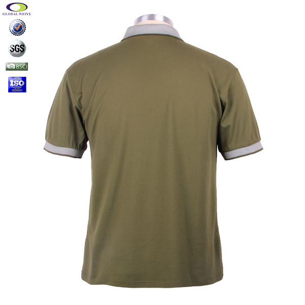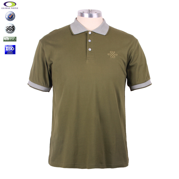 男士广告宣传衫军绿色刺绣翻领短袖T恤衫,前幅左胸高质量刺绣logo,专业纸样 标准裁剪,高性价棉拉架面料 、弹性好,耐磨,不会轻易缩水,环保染色 经典短袖时尚翻领款式 。