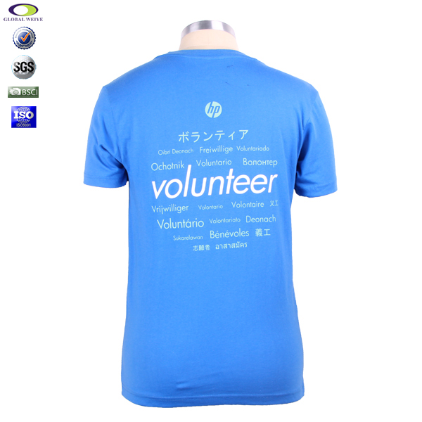 蓝色团队广告宣传衫圆领印花短袖T恤男工作服,前幅后幅环保丝网印logo ,简约时尚,高性价比精梳棉 吸湿透气 不起球、吸湿保暖、天然亲肤、环保染色,经典短袖圆领款式,突显时尚魅力。