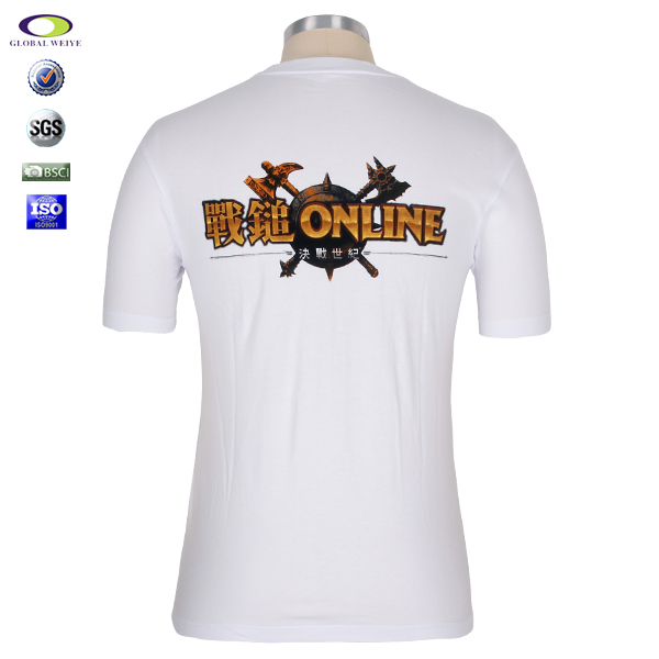 男士白色广告游戏宣传衫印花圆领短袖T恤衫,前后幅高质量丝网印logo,高性价比精梳棉   吸湿透气 不起球、吸湿保暖、天然亲肤、环保染色,经典短袖圆领款式,突显时尚魅力。