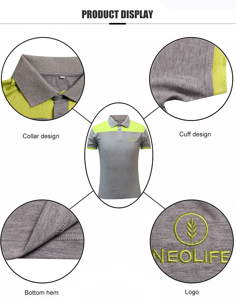 网站首页  > POLOT恤  > Polo衫  > 男式POLO衫  >  灰色Polo工作服定制绿色袖口翻领衫绣花logo