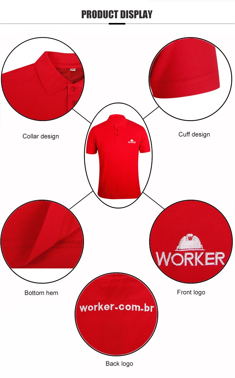 采用100%棉布料,定制红色,耐磨抗皱不起球、吸湿保暖、天然亲肤、专业纸样,标准裁剪合体,原生布领和袖口,绣企业logo。