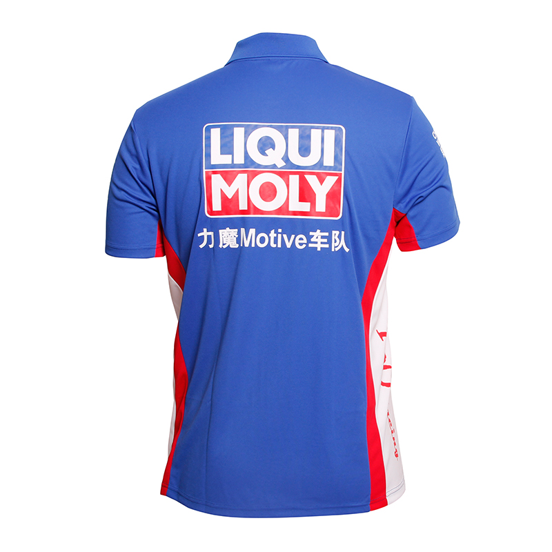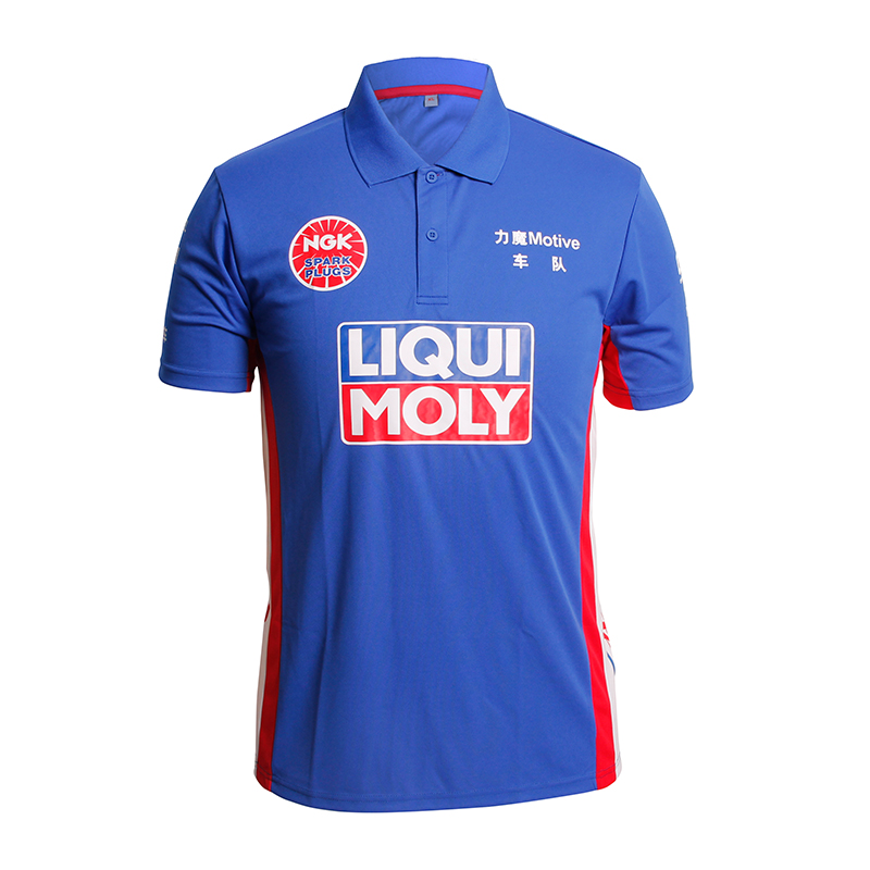 车队团体活动POLO衫,采用100%涤纶平纹快干布料,透气速干、面料光亮,柔软,不褪色,防霉抗菌等功能,加上红色蓝色白色三色拼接撞色的复杂工艺,印上合作的赞助商和活动项目,传递文化衫表达的深远意义!