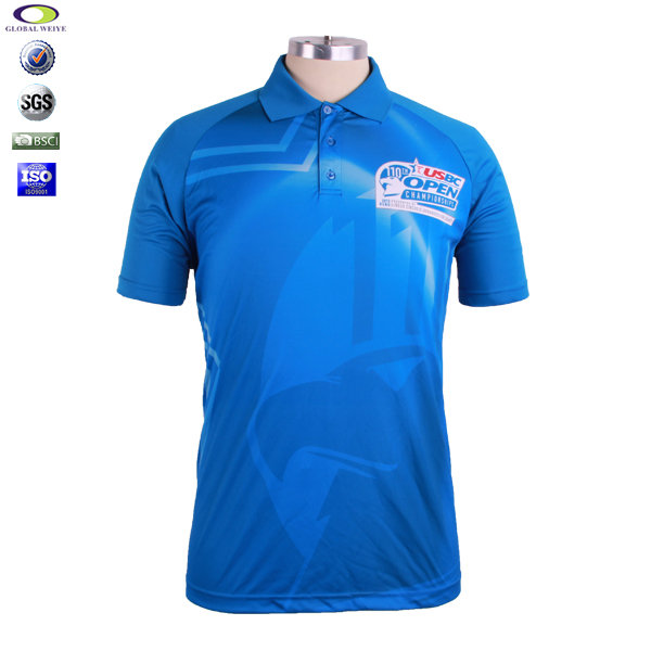 高档升华POLO衫,采用100%涤纶双面平纹布料,面料密实光滑,透气速干、柔软,不褪色,防霉抗菌等功能,酷炫的图案让人眼前一亮,前片蓝色升华工艺,后片蓝色布料组合,搭配相得益彰!