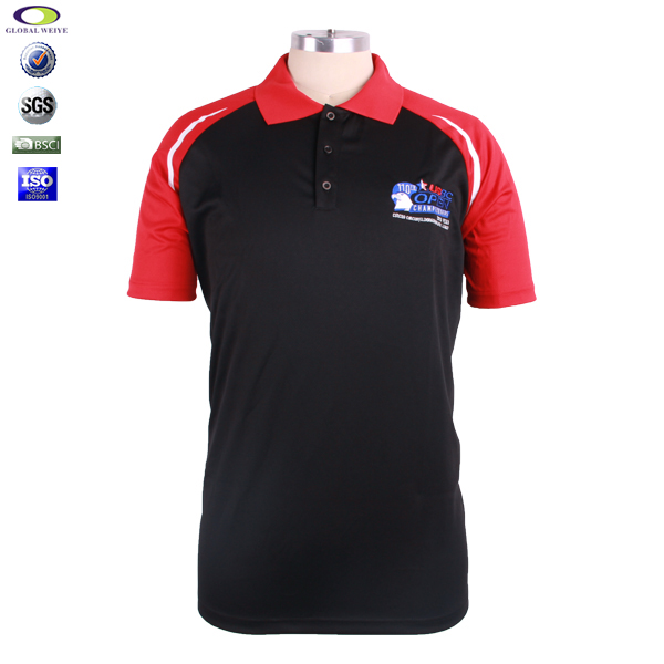 插肩运动POLO衫,采用100%涤纶网眼快干布料,透气速干、面料光亮,柔软,不褪色,防霉抗菌等功能,经典红色配黑色设计,环保绣花。