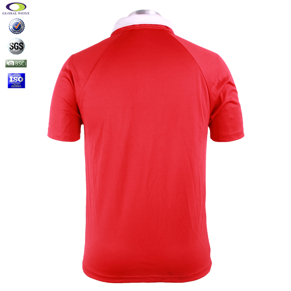 特有的双领POLO衫,白色/红色双领。采用100%涤纶速干网眼布料,透气快干、柔软,不褪色,防霉抗菌等功能,配上撞色滚边插肩款式,光身空白POLO衫可按照指定logo印花/绣花。