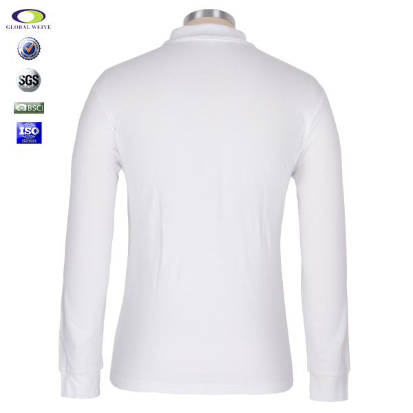 白色长袖POLO衫,采用精梳全棉布料,耐磨抗皱不起球、吸湿保暖、天然亲肤、环保染色,经典百搭白色,高品质绣花logo。