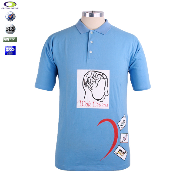 蓝色POLO衫,采用精梳全棉布料,耐磨抗皱不起球、吸湿保暖、天然亲肤、专业纸样,标准裁剪,环保印花,特色扑克牌图案。