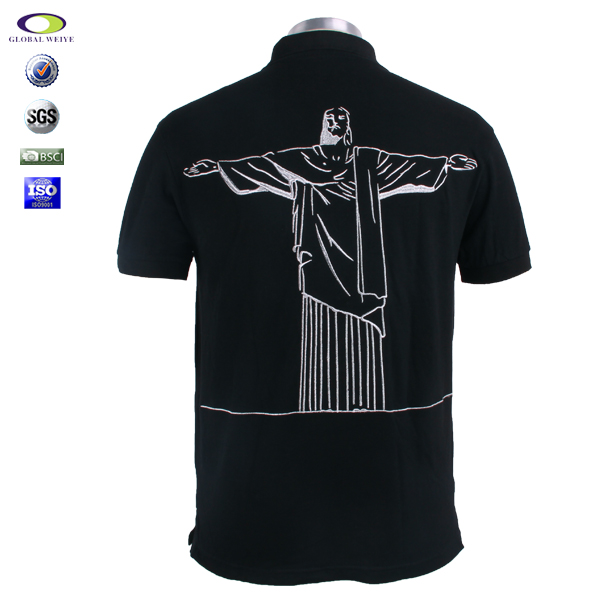 工厂定制高档polo衫男银线刺绣高端黑色商务装 |
