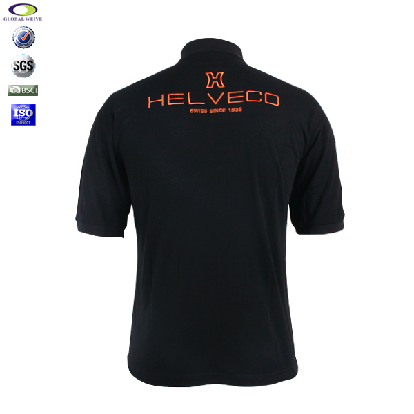 黑色广告POLO衫,采用100%棉布料,耐磨抗皱不起球、吸湿保暖、天然亲肤、环保染色,专业纸样,标准裁剪合体,定制企业广告logo。