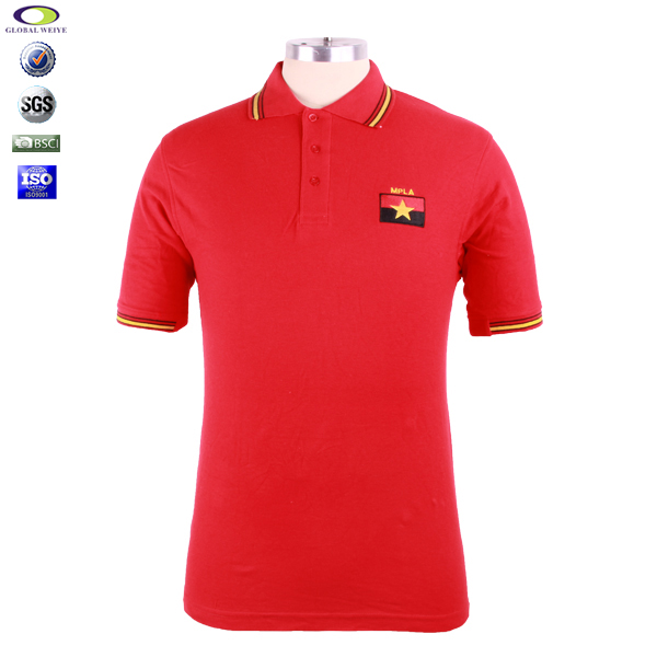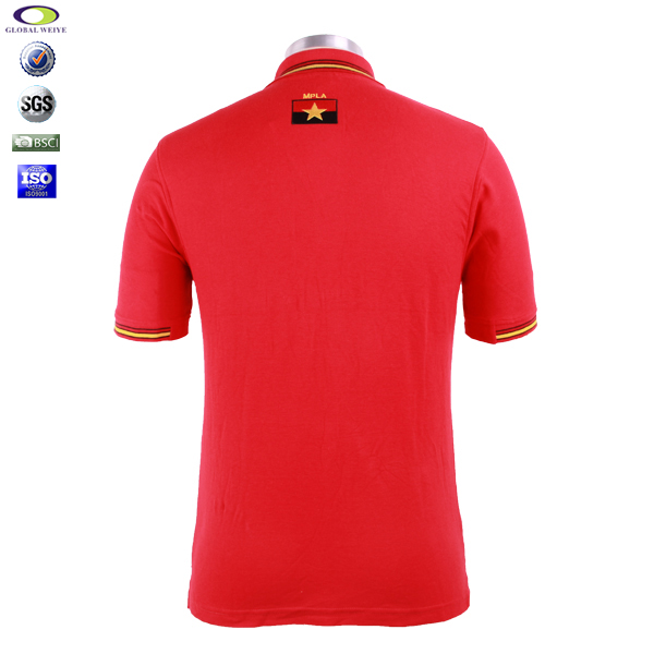 定制非洲红色polo衫男士短袖条纹色织领