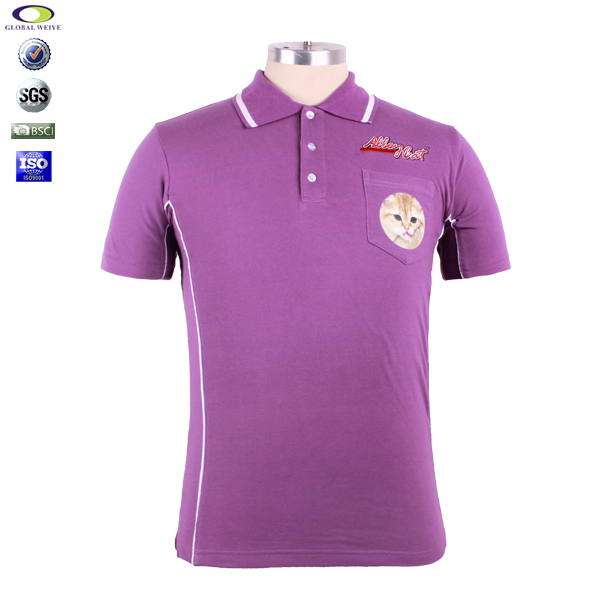 紫色POLO衫,采用精梳100%棉布料,耐磨抗皱不起球、吸湿保暖、天然亲肤、环保染色,专业纸样,标准裁剪修身合体,A级烫画logo,带口袋设计。