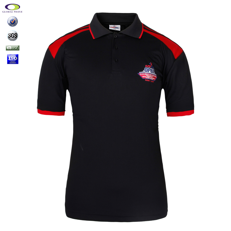 男士全涤红黑拼接刺绣POLO衫翻领短袖T恤,采用100%涤纶面料,速干面料,舒适耐穿,左胸刺绣工艺,撞色设计,突显时尚魅力,性价比经典短袖翻领款式,专业纸样 标准裁剪。