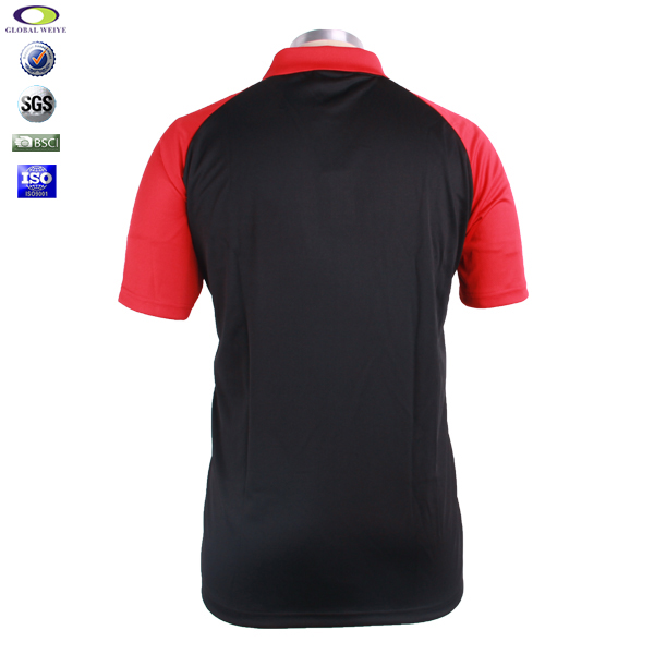 男士100%全涤红黑插肩袖刺绣POLO衫翻领短袖T恤,采用100%涤纶面料,速干面料,舒适耐穿,左胸刺绣工艺,撞色设计,突显时尚魅力,性价比经典短袖翻领款式,专业纸样 标准裁剪。