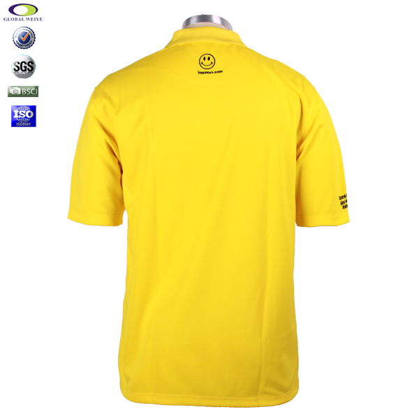 男士全涤黄色刺绣POLO衫翻领短袖T恤衫工作服,采用100%涤纶网眼面料,左胸及袖口精致刺绣工艺,速干面料,舒适耐穿,性价比经典短袖翻领款式,专业纸样 标准裁剪。