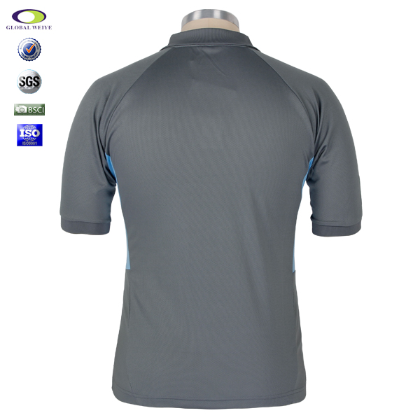 订制男士银灰蓝色拼接POLO衫翻领刺绣短袖T恤衫定制工厂 |