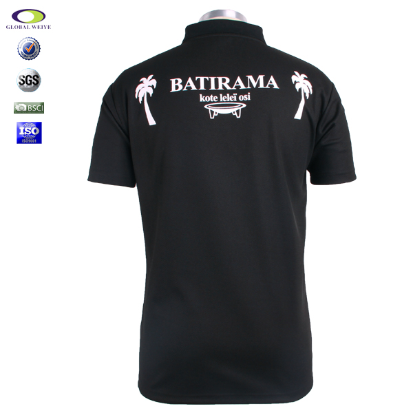 男士黑色翻领印花短袖Polo衫全涤网眼T恤衫,采用全涤速干面料,舒适耐穿,高性价比,胸前及后备高品质环保丝网印logo 经典短袖时尚翻领领款式 让POLO衫更突显时尚魅力。