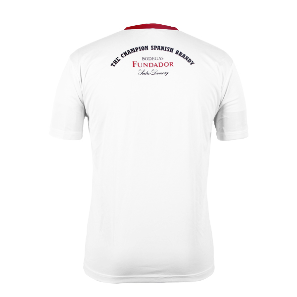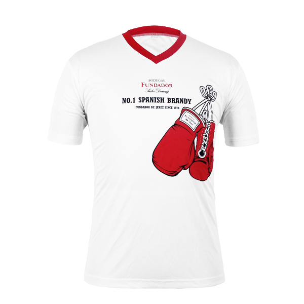 男士全涤白色拳头印花V领短袖T恤衫,采用全涤速干面料,舒适耐穿,高性价比,高品质环保丝网印logo 异色领撞色设计,突显时尚魅力 专业纸样 标准裁剪,经典短袖时尚V领款式。