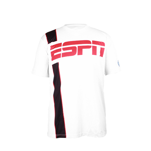 男士全涤白色字母印花圆领短袖运动服T恤衫,采用全涤速干面料,舒适耐穿,高性价比,高品质环保丝网印logo 专业纸样 标准裁剪,经典短袖时尚圆领款式。
