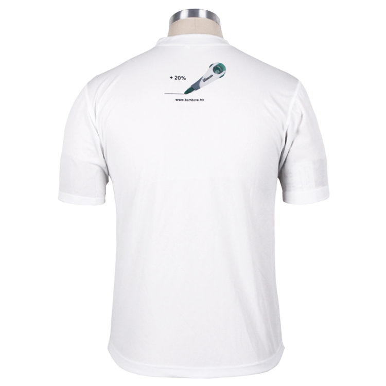 男士白色全涤圆领绣花短袖T恤衫广告衫,采用全涤速干面料,舒适耐穿,高性价比,胸前绣花logo,后幅高质量丝网印 专业纸样 标准裁剪,经典短袖时尚圆领款式。