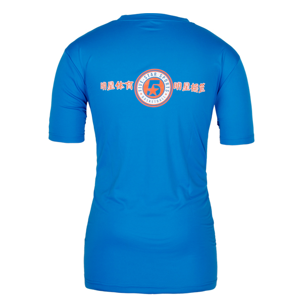 蓝色明星篮球印花T恤男短袖T恤衫工作服,采用全涤速干面料,舒适耐穿,高性价比,环保丝网印logo 专业纸样 标准裁剪,经典短袖时尚圆领款式。