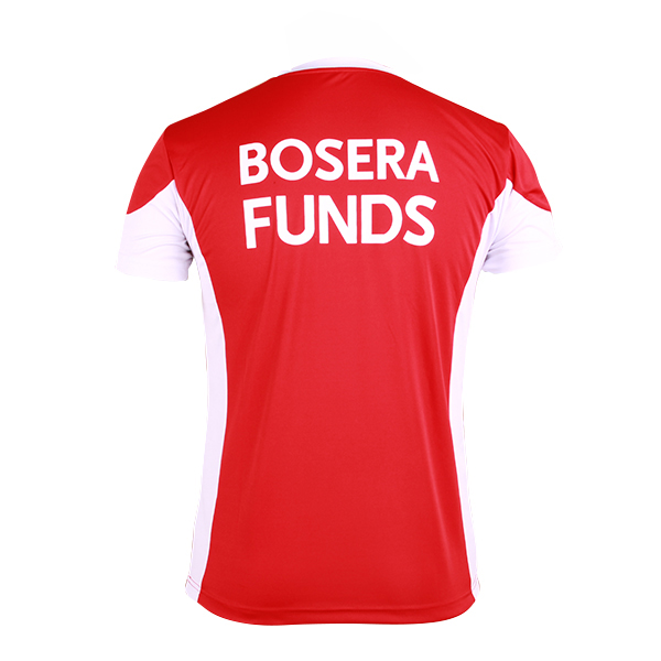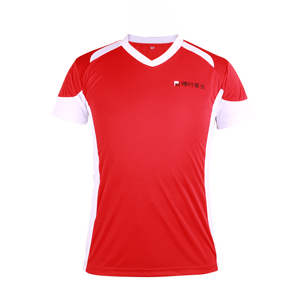 红色全涤V领插肩印花T恤男短袖T恤衫运动服,采用全涤速干面料,舒适耐穿,高性价比环保丝网印logo 专业纸样 标准裁剪,经典短袖时尚V领款式。