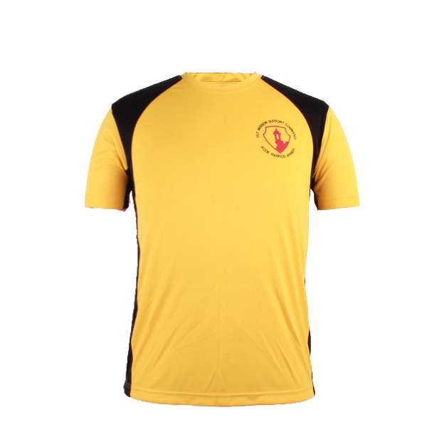 黄色全涤插肩印花T恤男圆领短袖工作服,采用全涤速干面料,舒适耐穿,高性价比,高品质丝网印logo 专业纸样 标准裁剪,经典短袖时尚圆领款式。