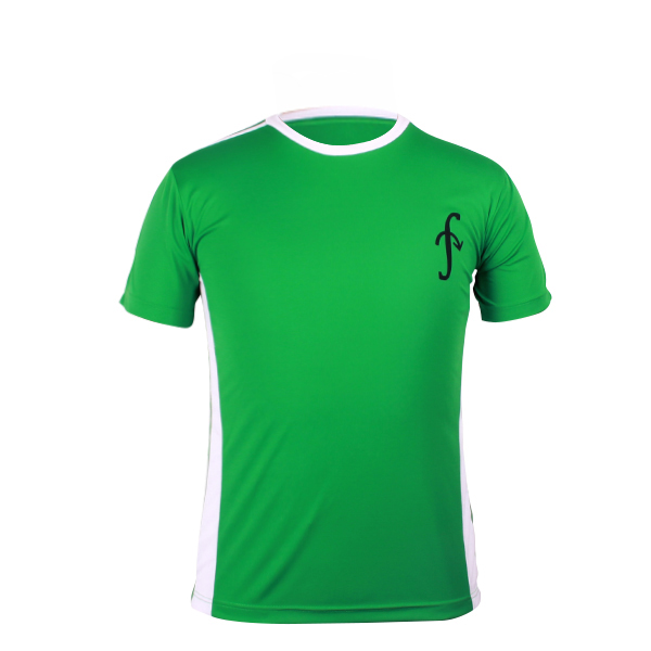 绿色全涤印花男士T恤圆领短袖团服,采用全涤速干面料,舒适耐穿,高性价比,高品质丝网印logo   专业纸样 标准裁剪,经典短袖时尚圆领款式。