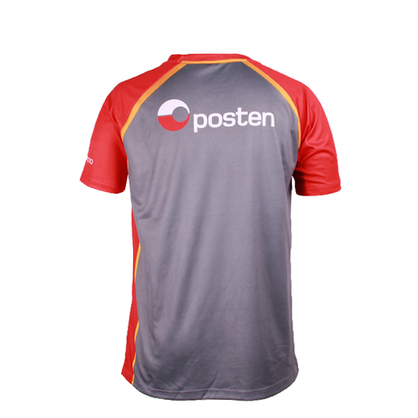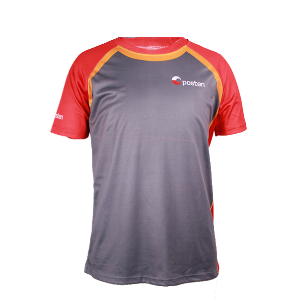 订制男士红灰拼接全涤插肩印花T恤圆领短袖团服定做 |