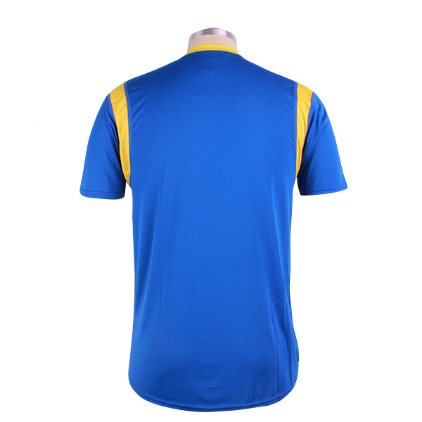 男士蓝色全涤插肩拼接印花T恤圆领短袖运动服,采用全涤速干面料,舒适耐穿,高性价比,高品质丝网印logo   专业纸样 标准裁剪,经典短袖时尚圆领款式。