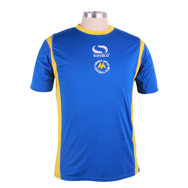 订制男士蓝色全涤插肩拼接印花T恤圆领短袖运动服定做