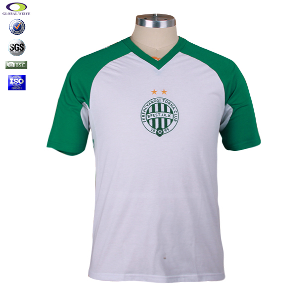 时尚男士V领T恤,采用高品质精梳棉面料,天然环保、柔软舒适、透气性好, 款式白色拼绿色撞色设计,棒球袖立体裁剪, 前幅精品刺绣logo