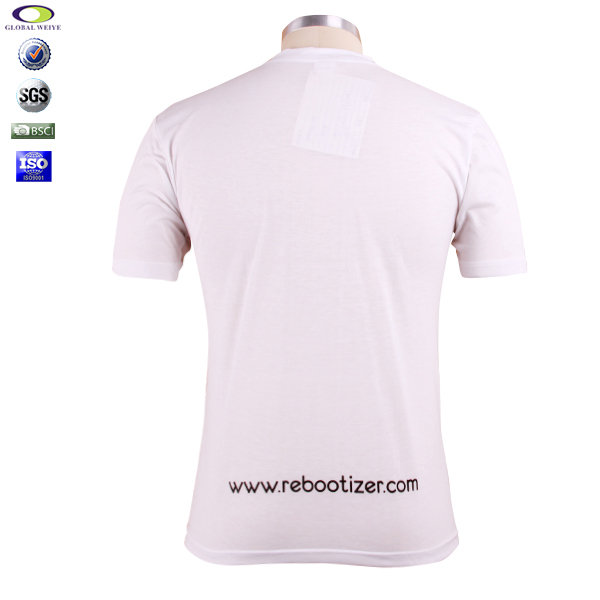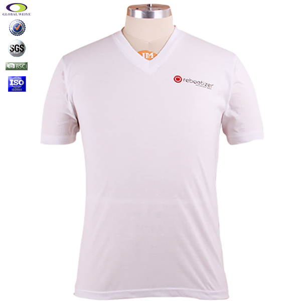 白色男士V领T恤,棉涤混纺布料,拥有接近纯棉的轻柔手感和舒适度,吸湿透气性好 ,经典短袖款式,前幅后幅环保丝网印logo