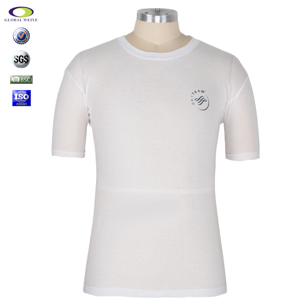 男士短袖圆领白色T恤,面料质地轻盈, 吸湿透气性好,经典短袖圆领款式,前幅简约高品质环保丝网印logo,价格非常有优势