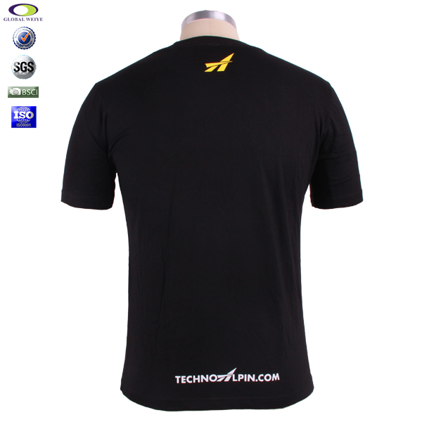 黑色圆领短袖T恤公司活动印花logo,高品质精梳棉,耐磨抗皱不起球、吸湿保暖、天然亲肤、环保染色,经典短袖圆领款式,可定制高品质环保丝网印logo