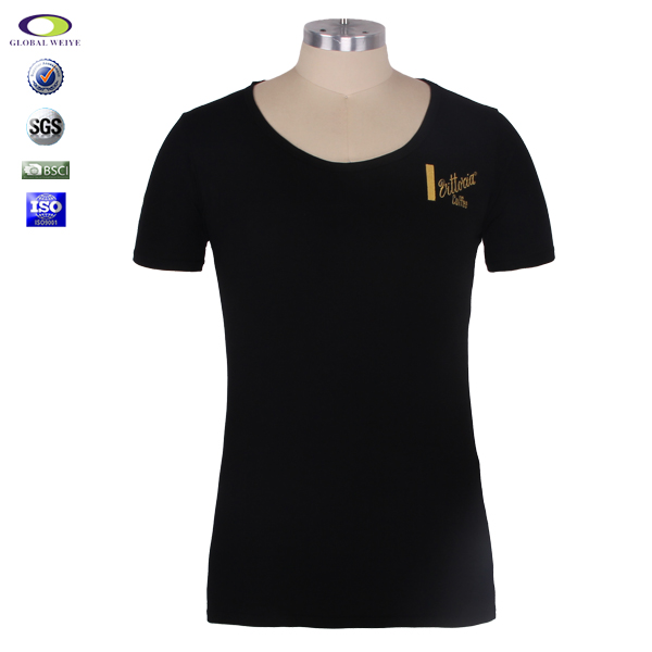 高品质男士黑色圆领短袖T恤品牌金线绣花logo,高品质精梳棉,耐磨抗皱不起球、吸湿保暖、天然亲肤、环保染色,经典短袖圆领款式,高档金线刺绣logo,