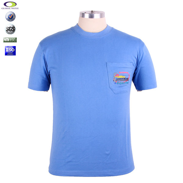 男士纯棉蓝色圆领口袋T恤印花logo,高性价比精梳棉   吸湿透气 不起球、吸湿保暖、天然亲肤、环保染色,经典短袖圆领款式,特色口袋设计,环保丝网印logo