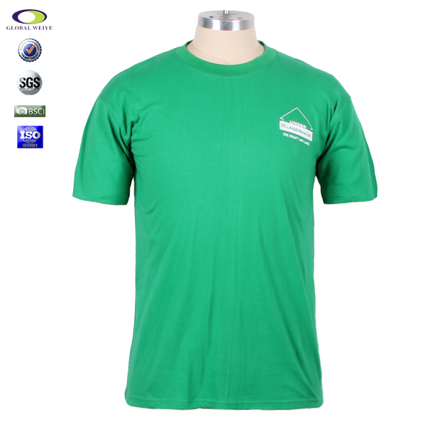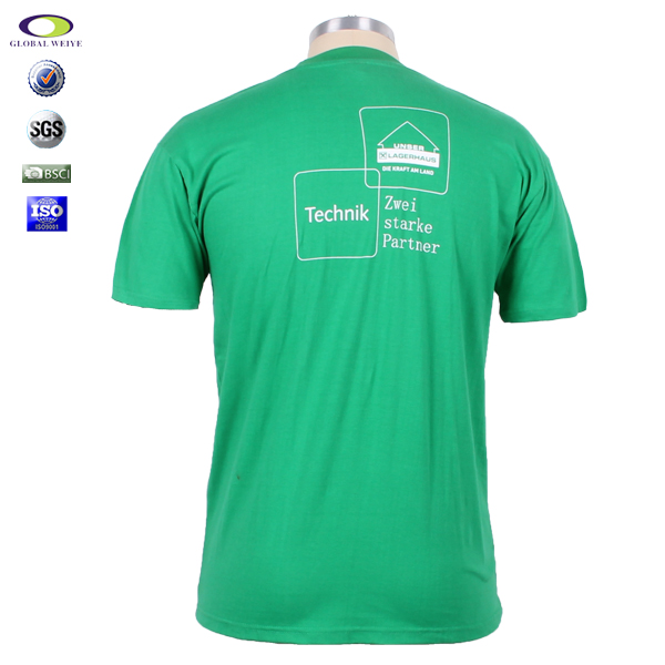 广告宣传男士圆领绿色T恤字母印花,高性价比精梳棉 吸湿透气 天然环保 柔软舒适,经典短袖圆领款式,环保丝网印logo