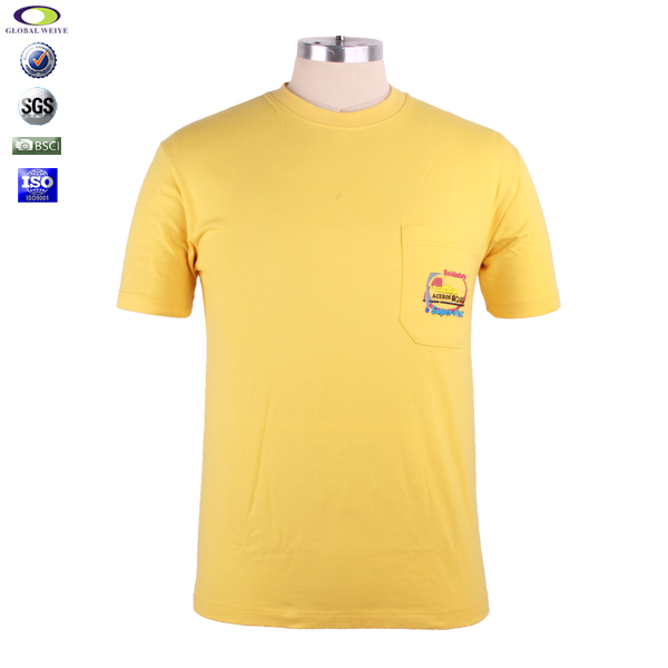 口袋设计男士纯棉黄色圆领T恤