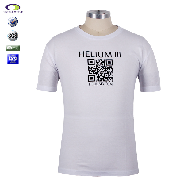 二维码印花白色圆领纯棉T恤,高品质精梳棉  吸湿透气 不起球、吸湿保暖、天然亲肤、环保染色,经典短袖圆领款式,环保丝网印logo